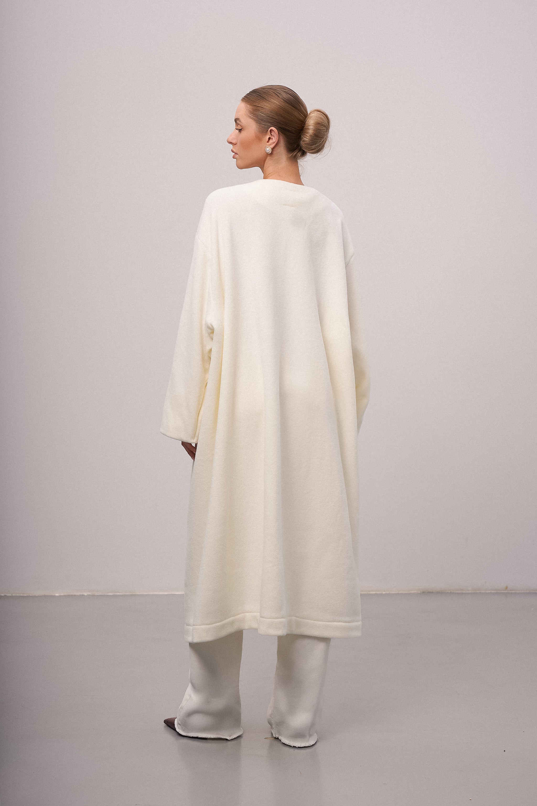 The long cardigan is a stylish and practical piece that combines comfort and warmth. Thanks to its versatile design, it easily fits into various outfits, from casual to more formal, and is perfect for layering during colder seasons.