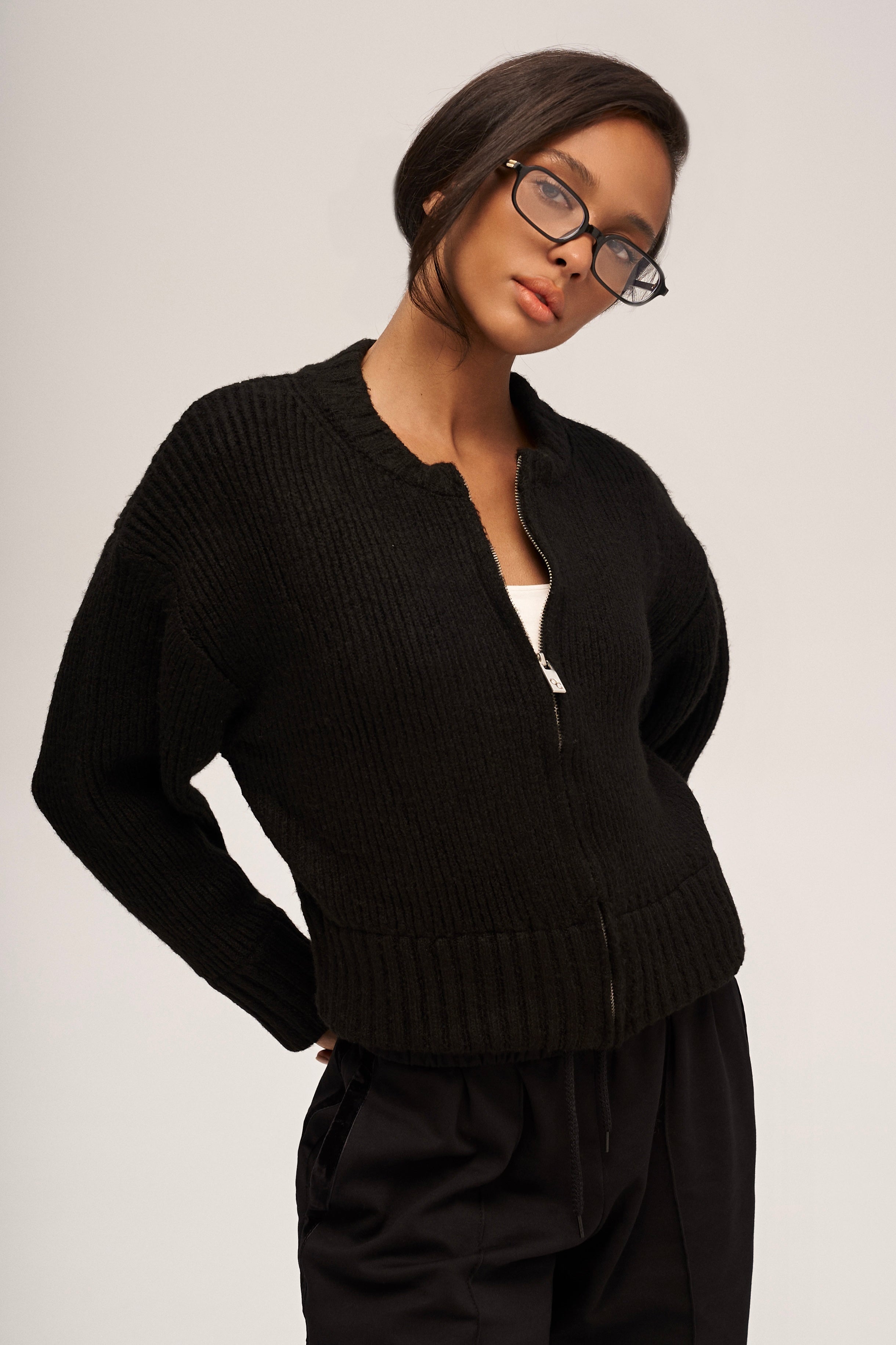 Cropped zip-up jumper — a practical and stylish choice for everyday wear. The zipper makes it easy to put on and take off, while the comfortable cut makes it perfect for cool weather and as a top layer.